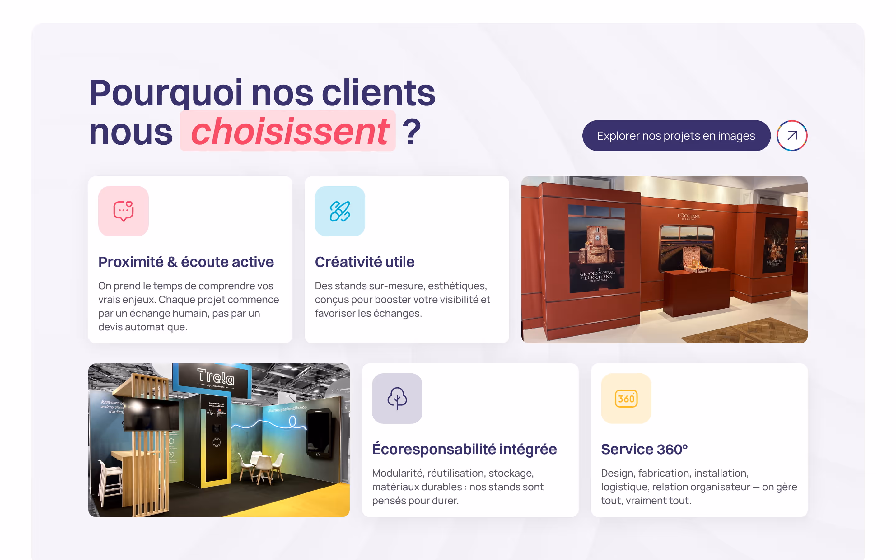 Son positionnement : du stand sur-mesure, exigeant, pensé pour valoriser l’image de marque et maximiser l’impact sur les salons B2B.