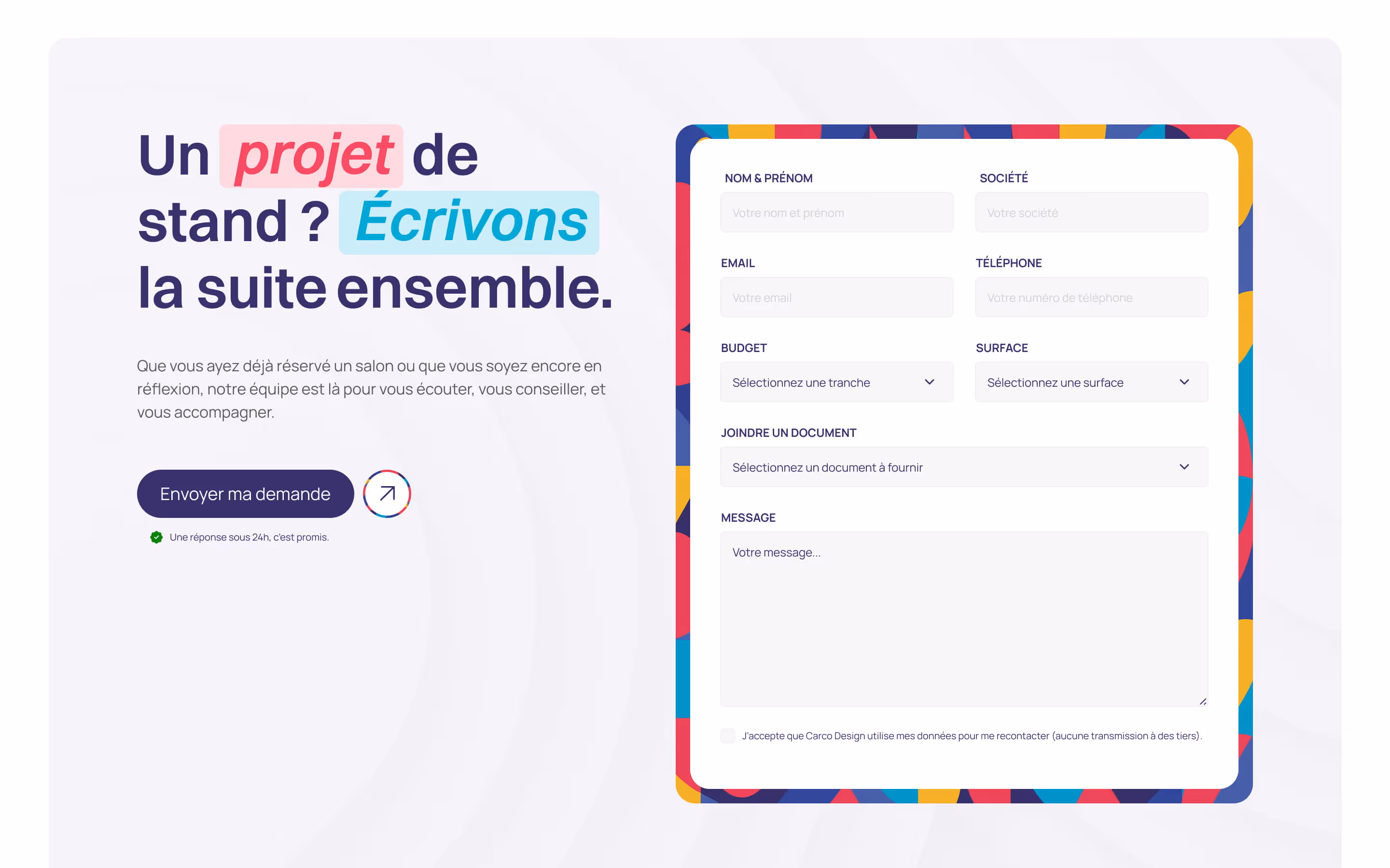 Carco Design accompagne les marques comme Danone, Deezer, TF1, autosphere, Clinique etc. dans la conception, la fabrication et l’installation de stands pour les salons professionnels. De la création à la mise en œuvre sur site, Carco Design intervient comme un partenaire global, capable de transformer un espace éphémère en véritable outil de visibilité et de business.