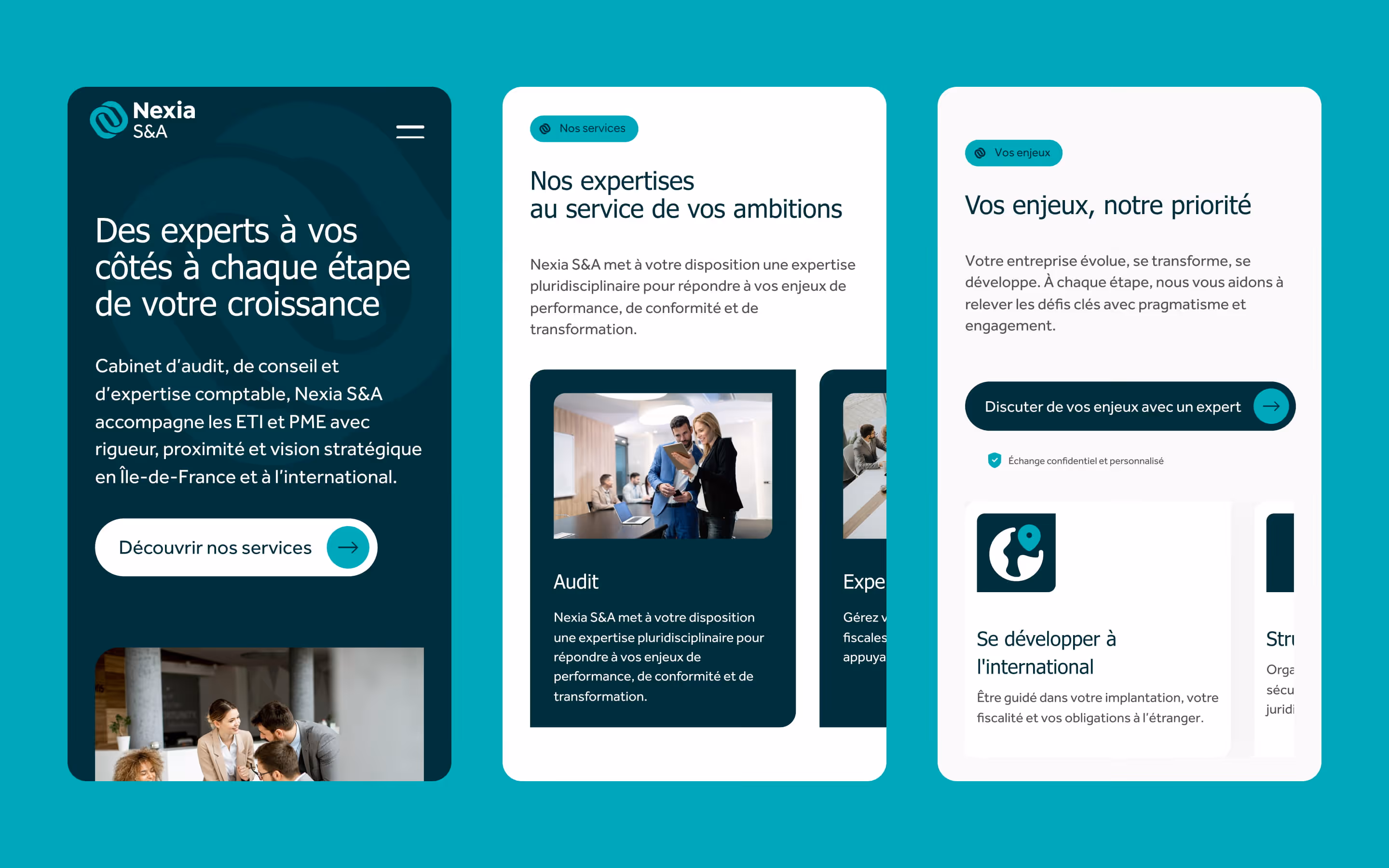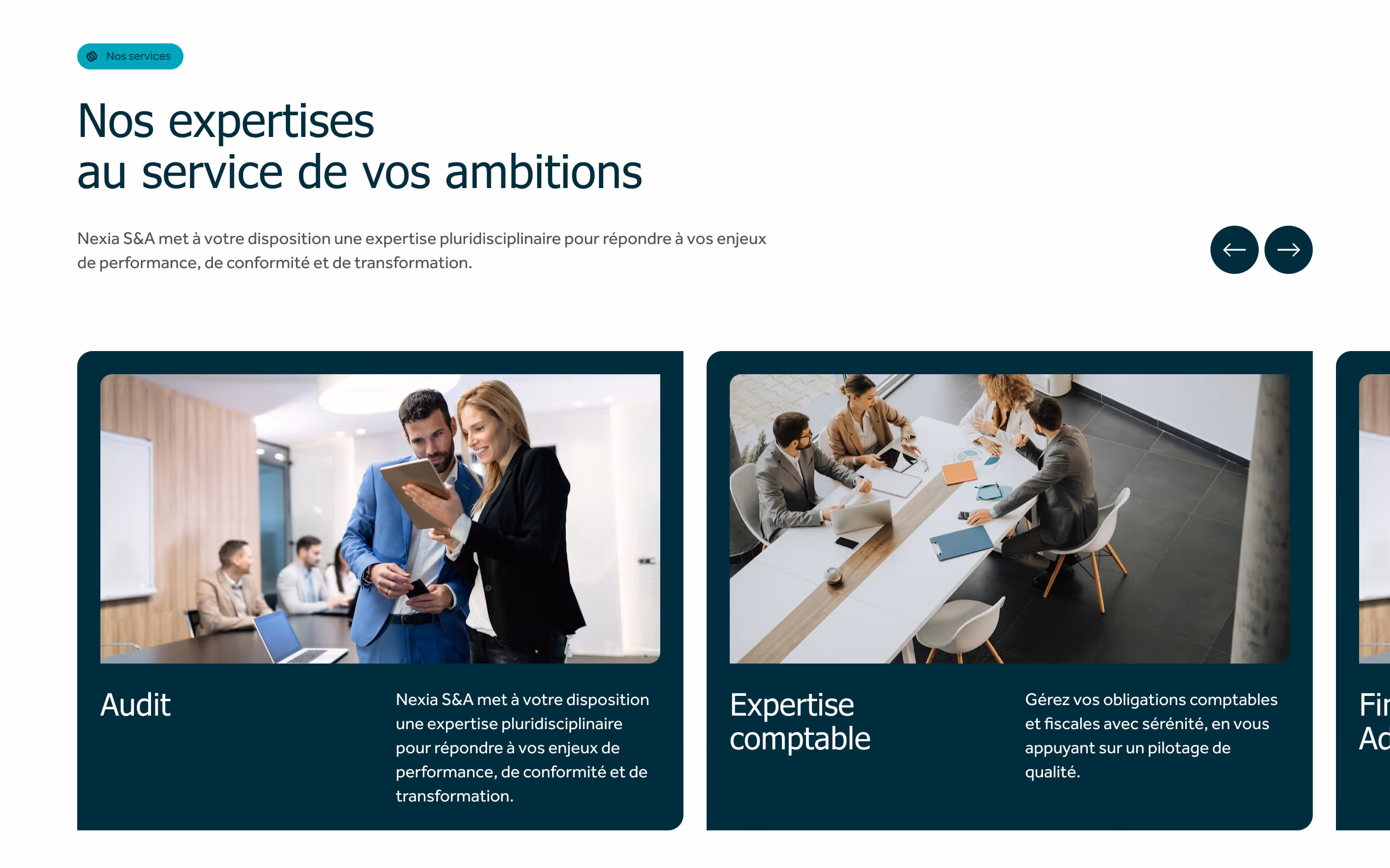 Avec cette refonte, Nexia SA dispose d'un actif numérique solide qui renforce son autorité sur le marché de l'audit et du conseil. En combinant un design de haute volée et une technique irréprochable, nous avons créé une plateforme capable de soutenir la croissance du cabinet et de rassurer ses clients les plus prestigieux. Nexia SA n'est plus seulement un expert du chiffre, c'est désormais une référence digitale.