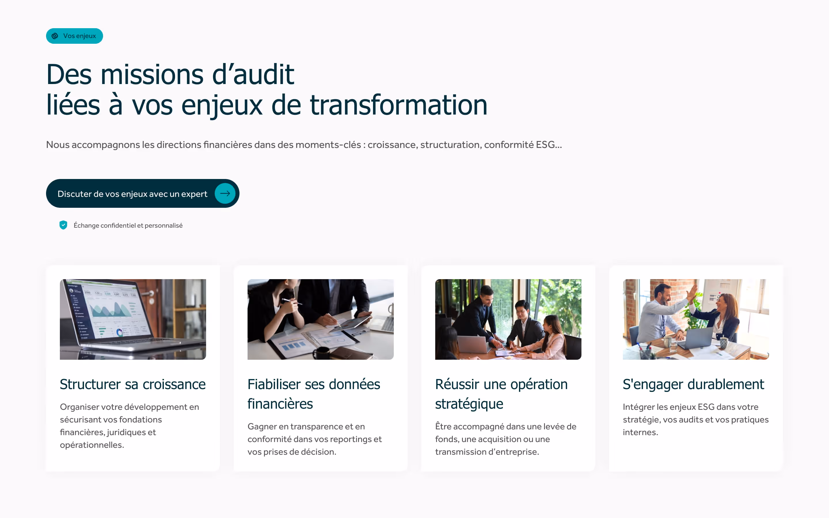 - Complexité de l'offre : Une difficulté à hiérarchiser les nombreux services (Audit, Conseil, Juridique, Fiscal) pour une navigation fluide.