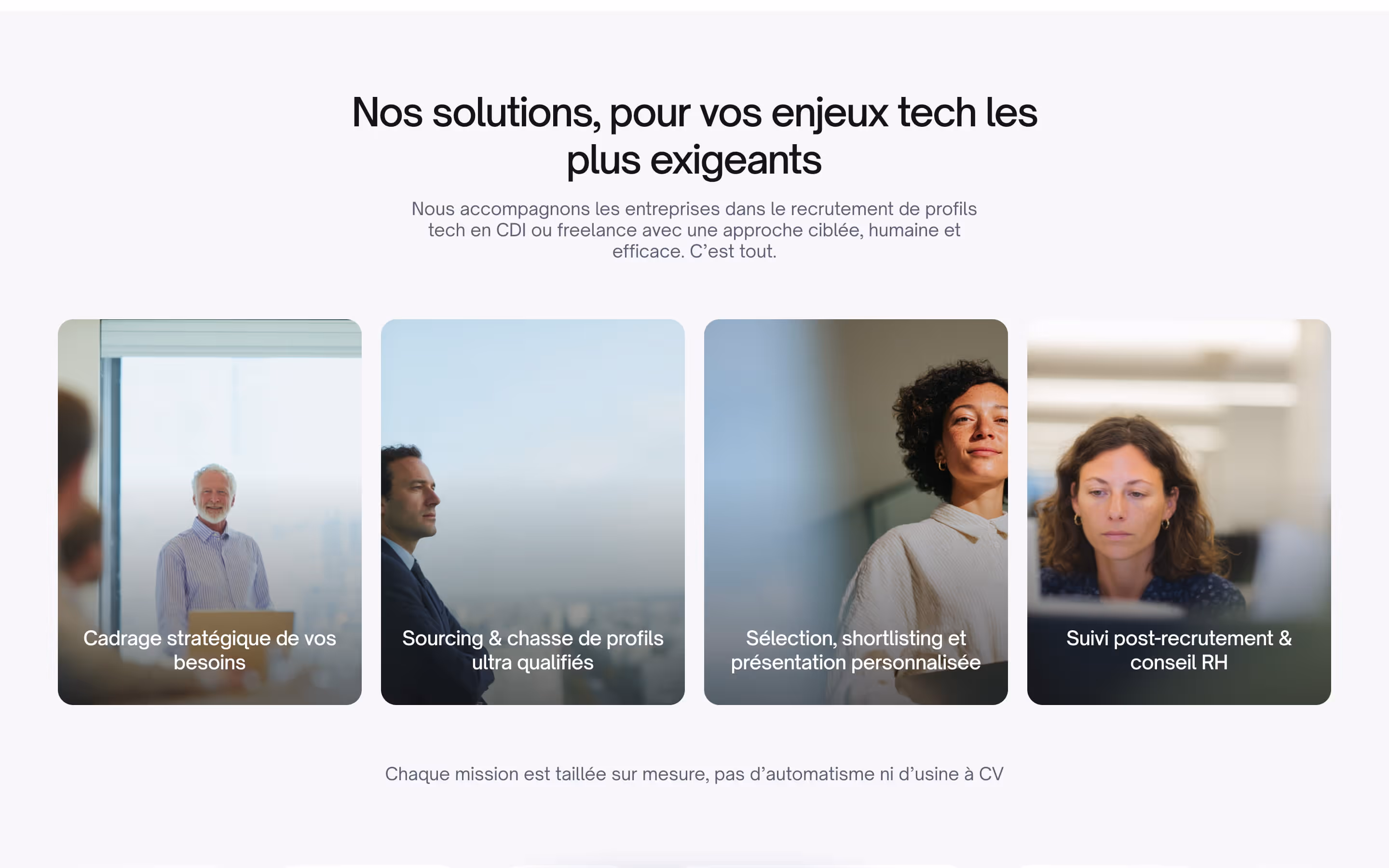 We work mainly with startups, scale-ups, SaaS, firms and B2B businesses, in France and internationally. The common point: a need for clarity, credibility and performance.