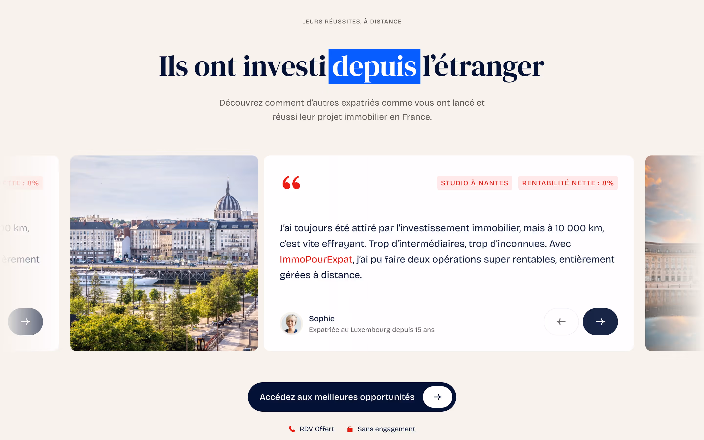 Key objective: design a clear, educational and reassuring Webflow site, capable of converting expatriates into real estate project developers.