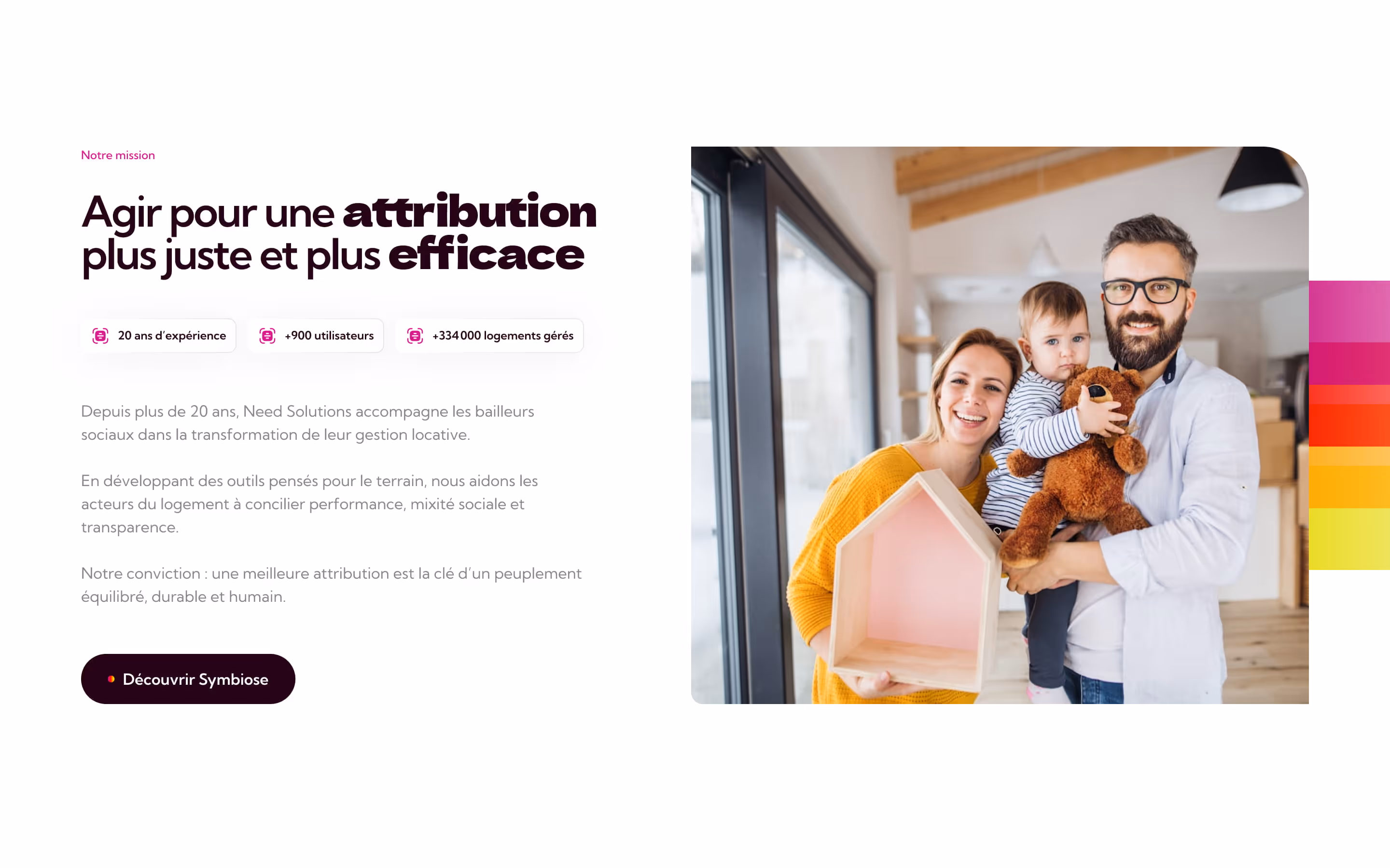 Need Solutions est un éditeur de solutions métier dédié aux acteurs publics et parapublics. Il développe Symbiose, une plateforme conçue pour simplifier le travail des équipes terrain et améliorer le pilotage des décideurs métier.