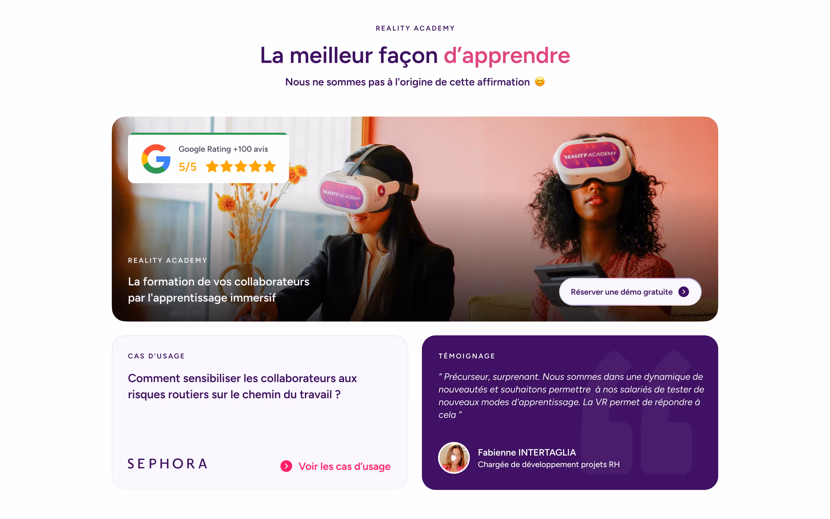 - Mise en avant claire des cas d’usage VR