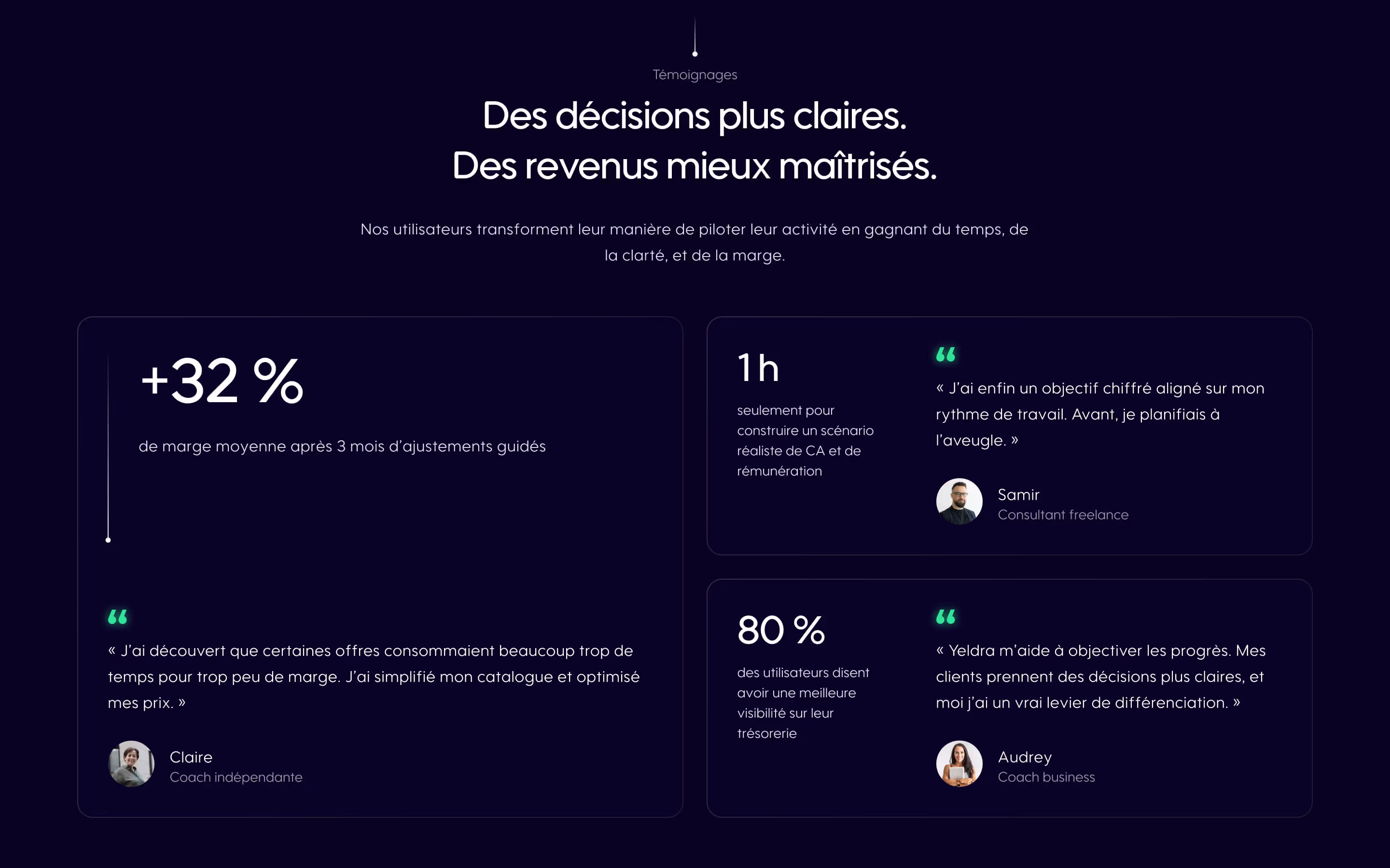 L’objectif : identifier ce qui crée réellement de la valeur dans Yeldra, et ce qui doit être expliqué, simplifié ou reformulé pour des dirigeants non experts en finance.