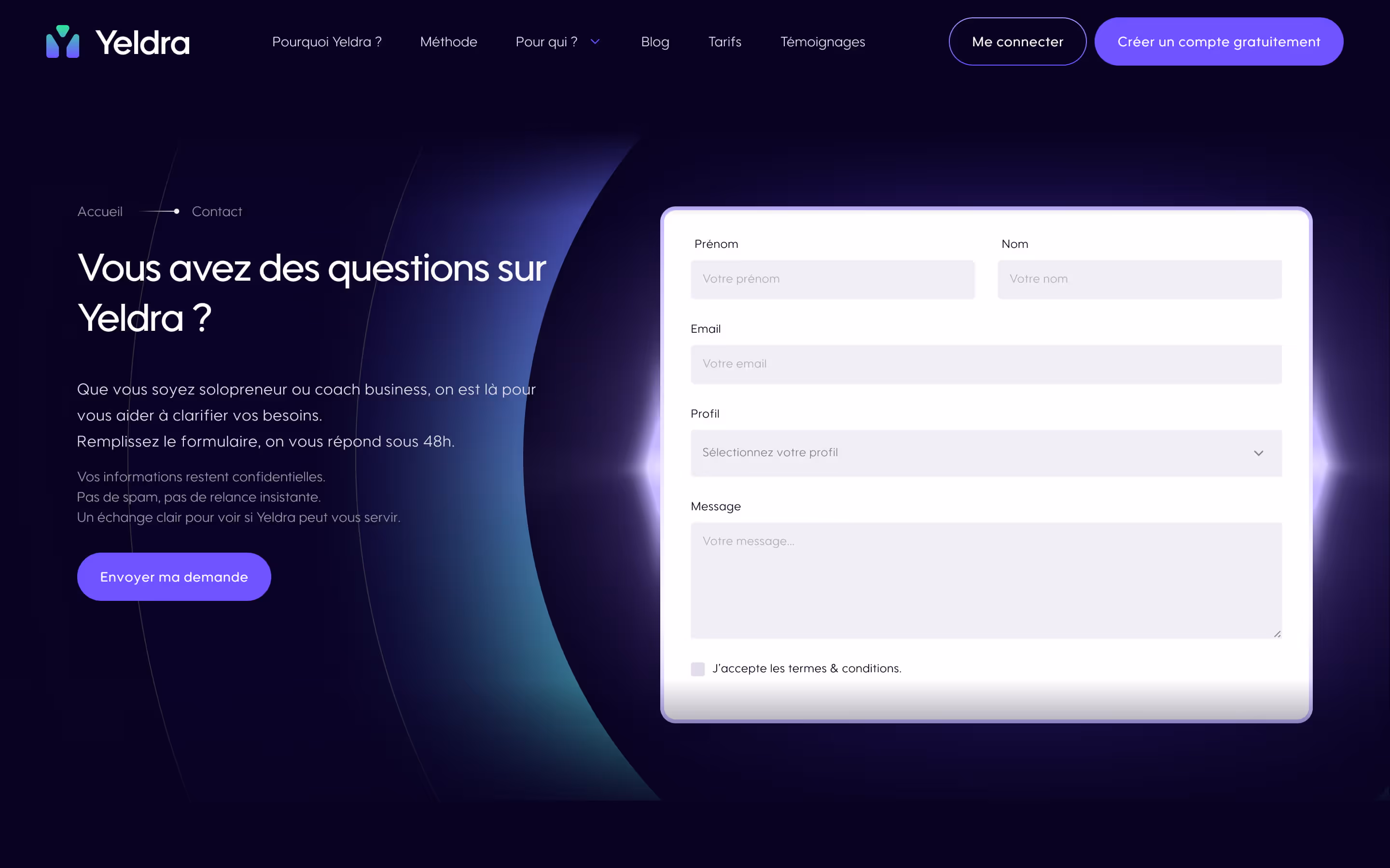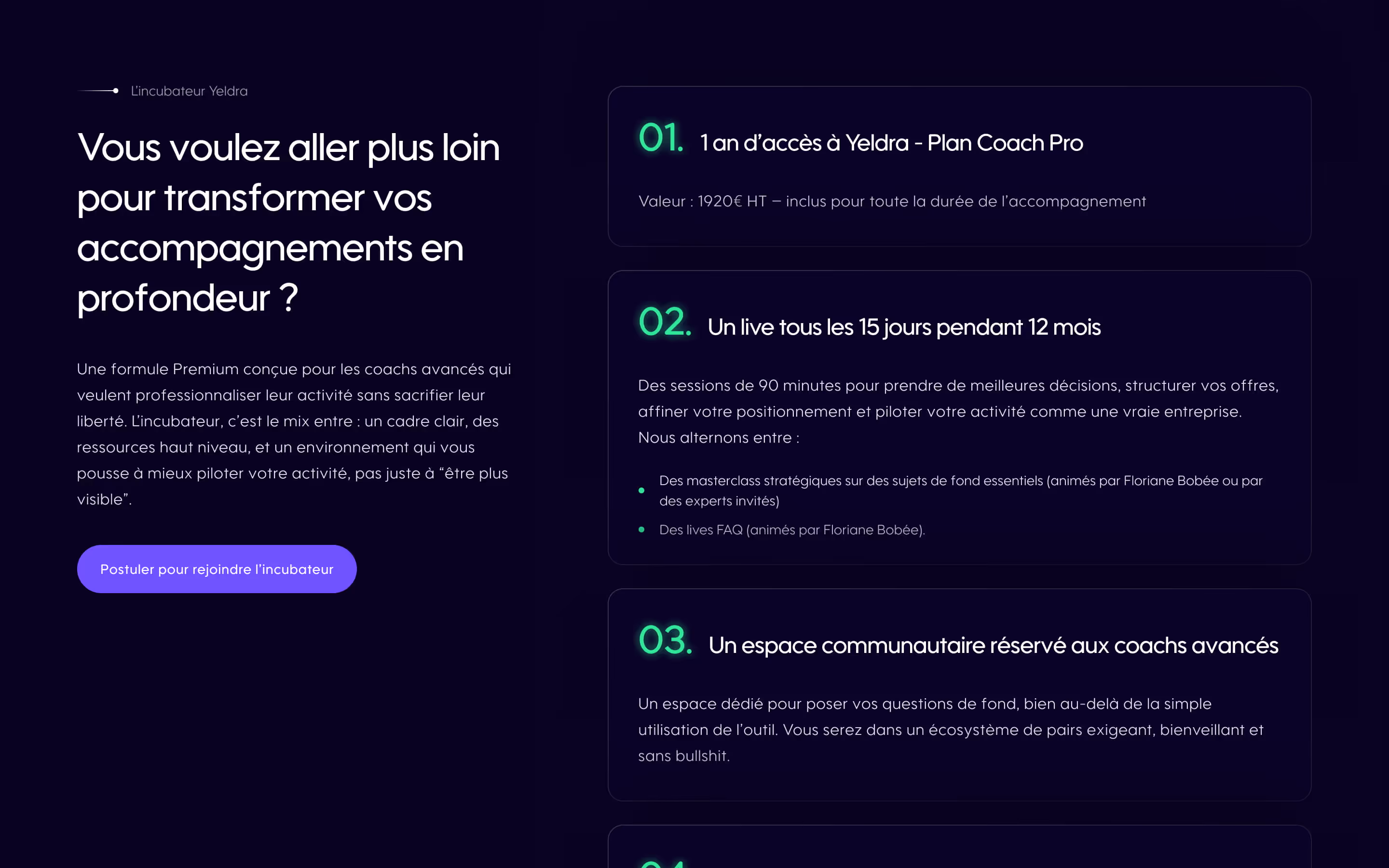 Une landing page spécifique a également été conçue pour le Bootcamp, avec un objectif clair : convertir sans diluer le message principal de Yeldra.