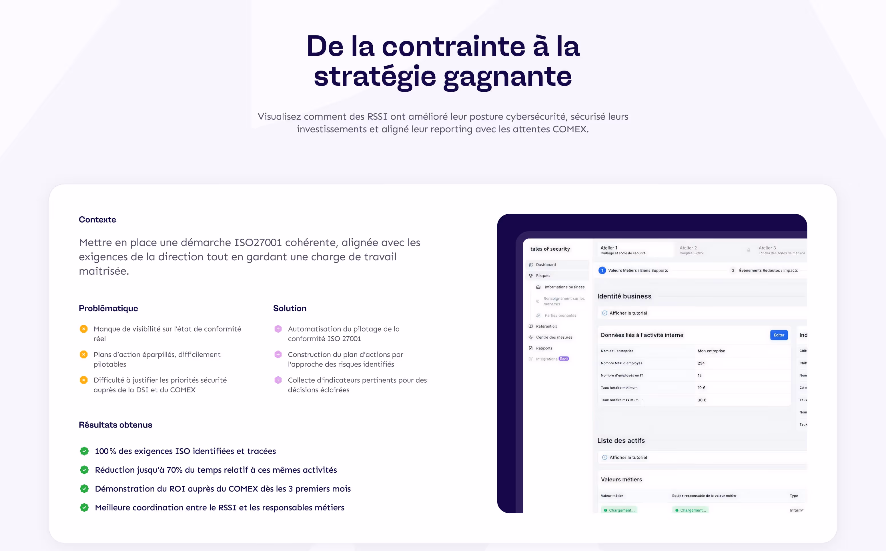 Peu lisible, peu crédible, et loin de refléter la valeur ajoutée de Tales of Security, un SaaS tech au service des directions sécurité.
